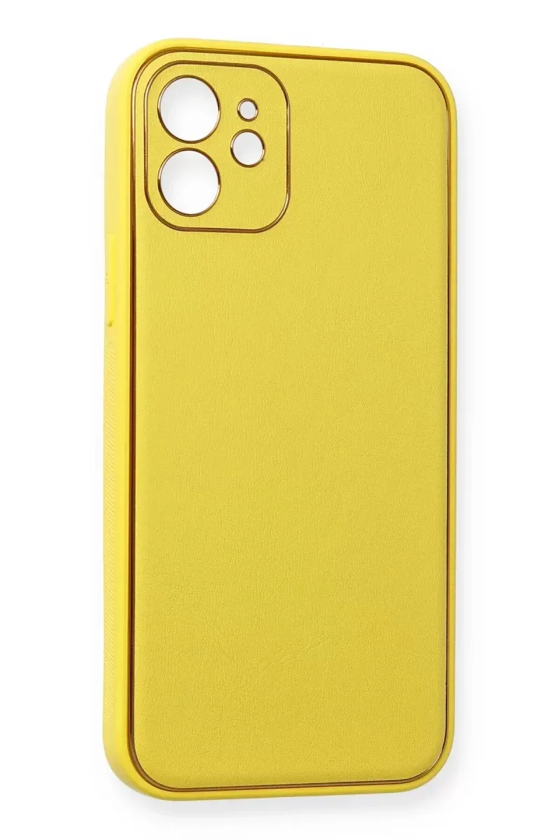 Newface iPhone 12 Kılıf Coco Deri Silikon Kapak - Sarı