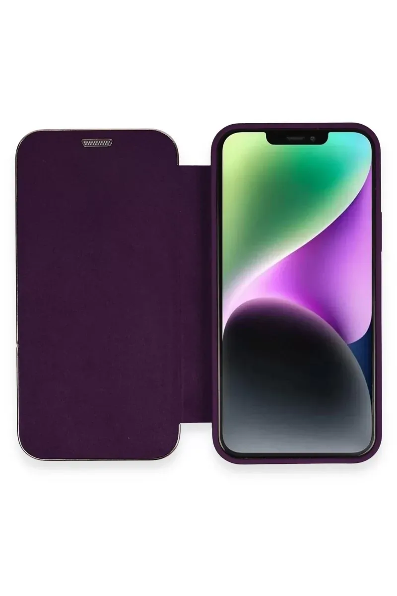 Newface iPhone 12 Kılıf Dolpin Kapaklı - Derin Mor