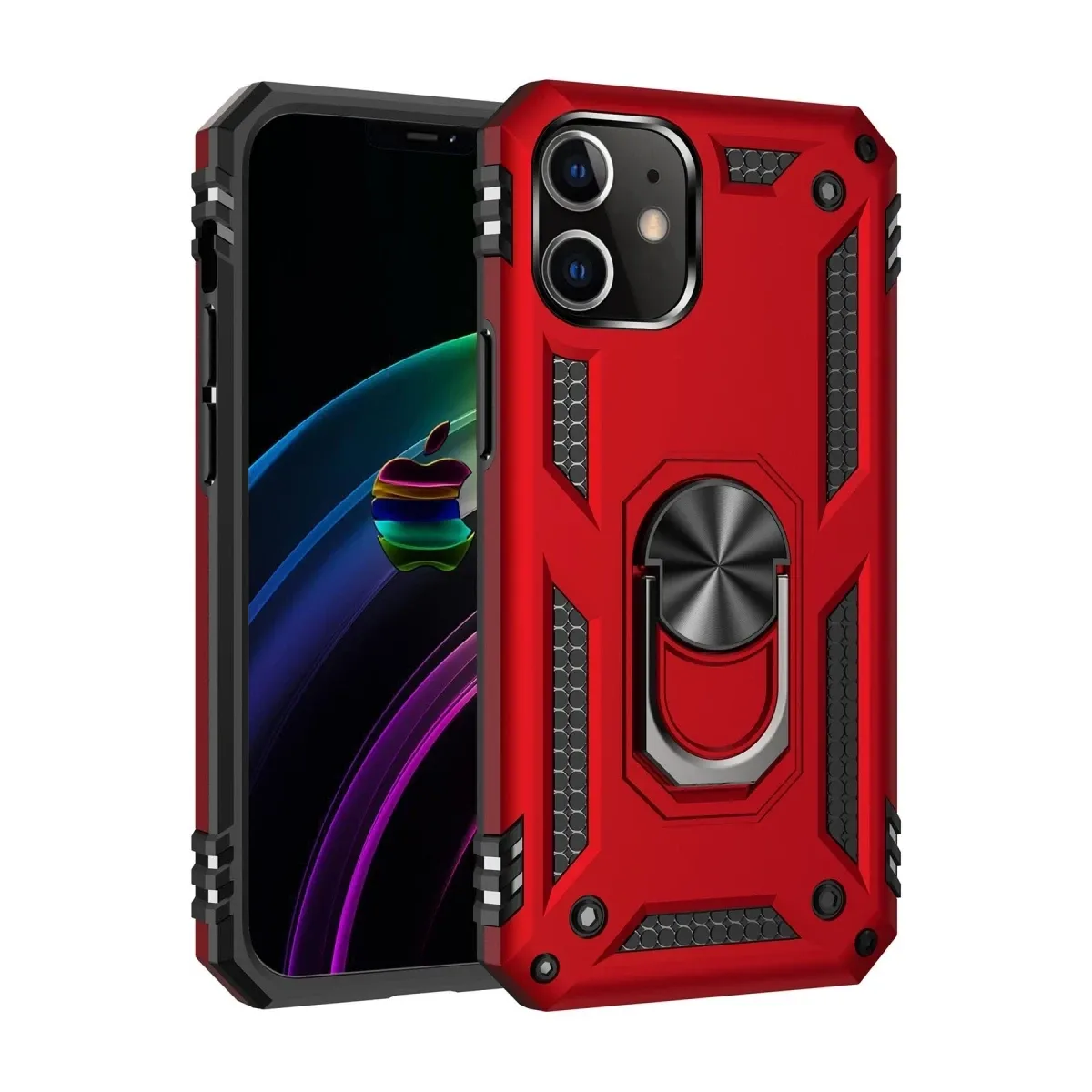Newface iPhone 12 Kılıf Sofya Yüzüklü Silikon Kapak - Kırmızı