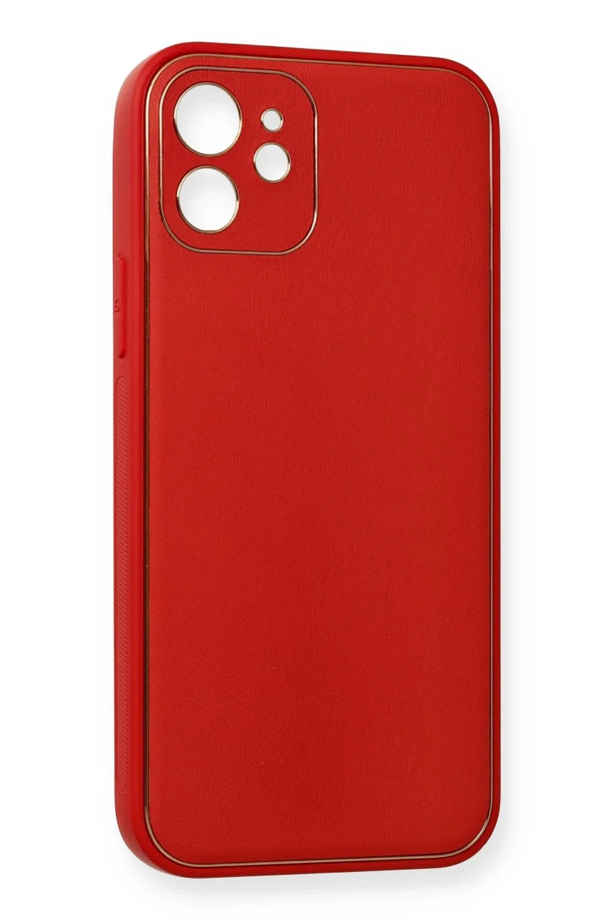 Newface iPhone 12 Mini Kılıf Coco Deri Silikon Kapak - Kırmızı