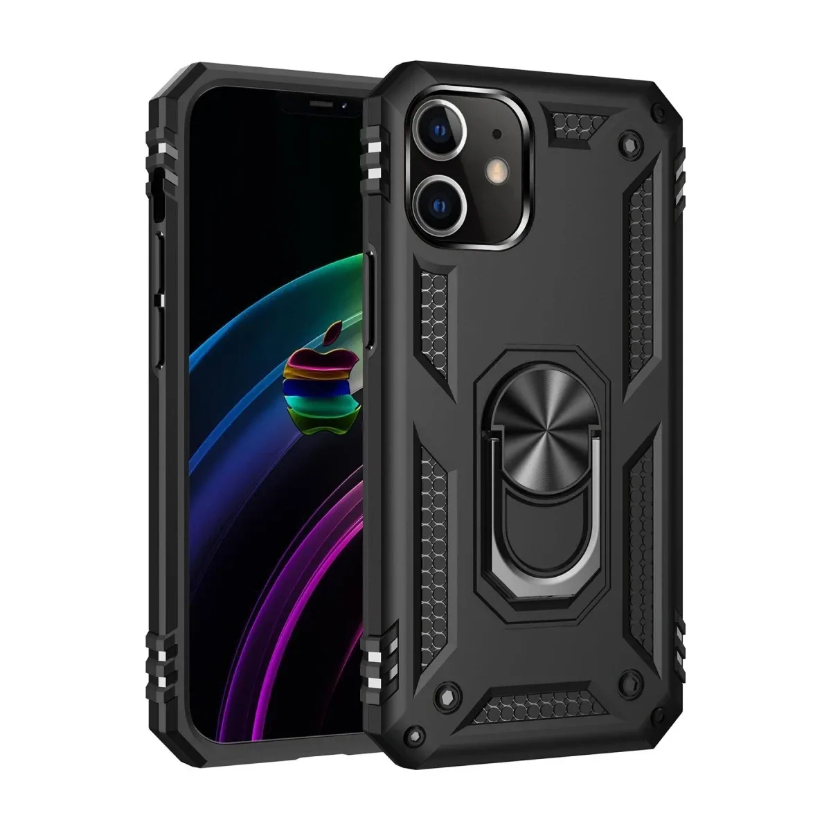Newface iPhone 12 Mini Kılıf Sofya Yüzüklü Silikon Kapak - Siyah