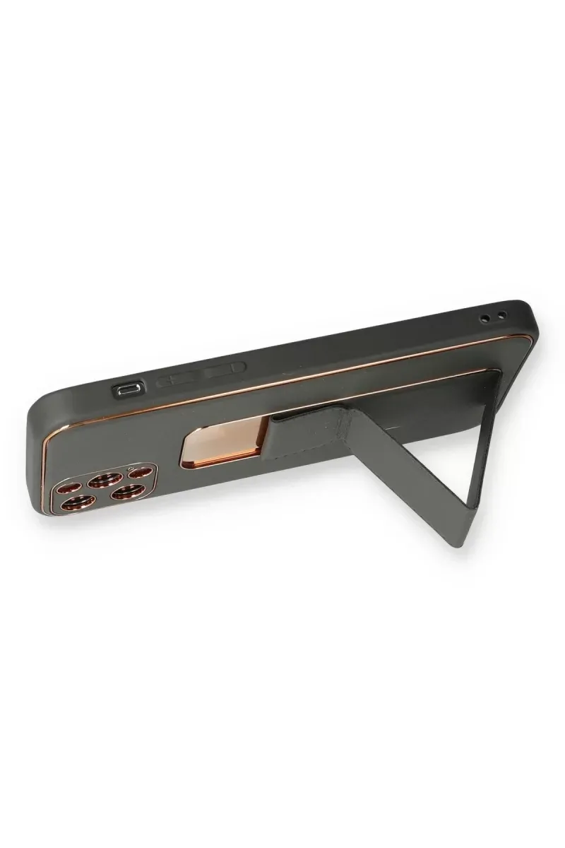 Newface iPhone 12 Pro Kılıf Coco Deri Standlı Kapak - Füme