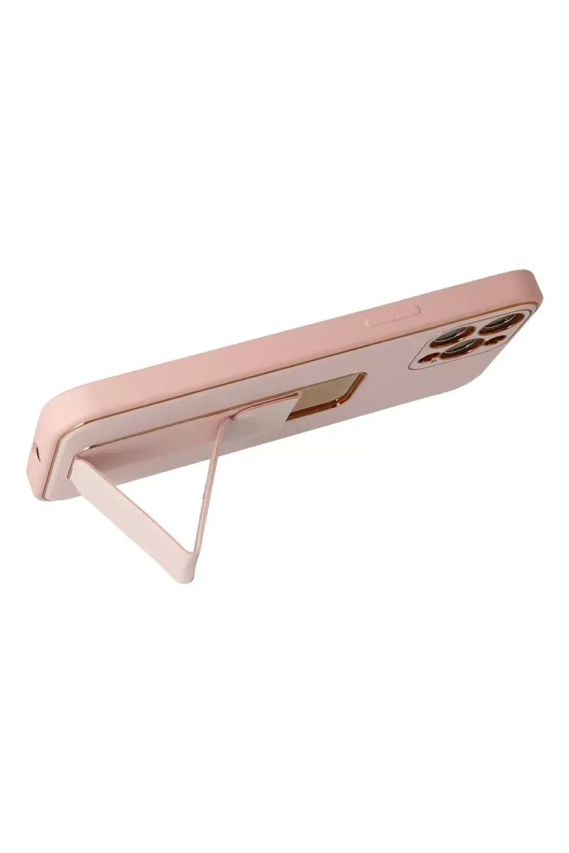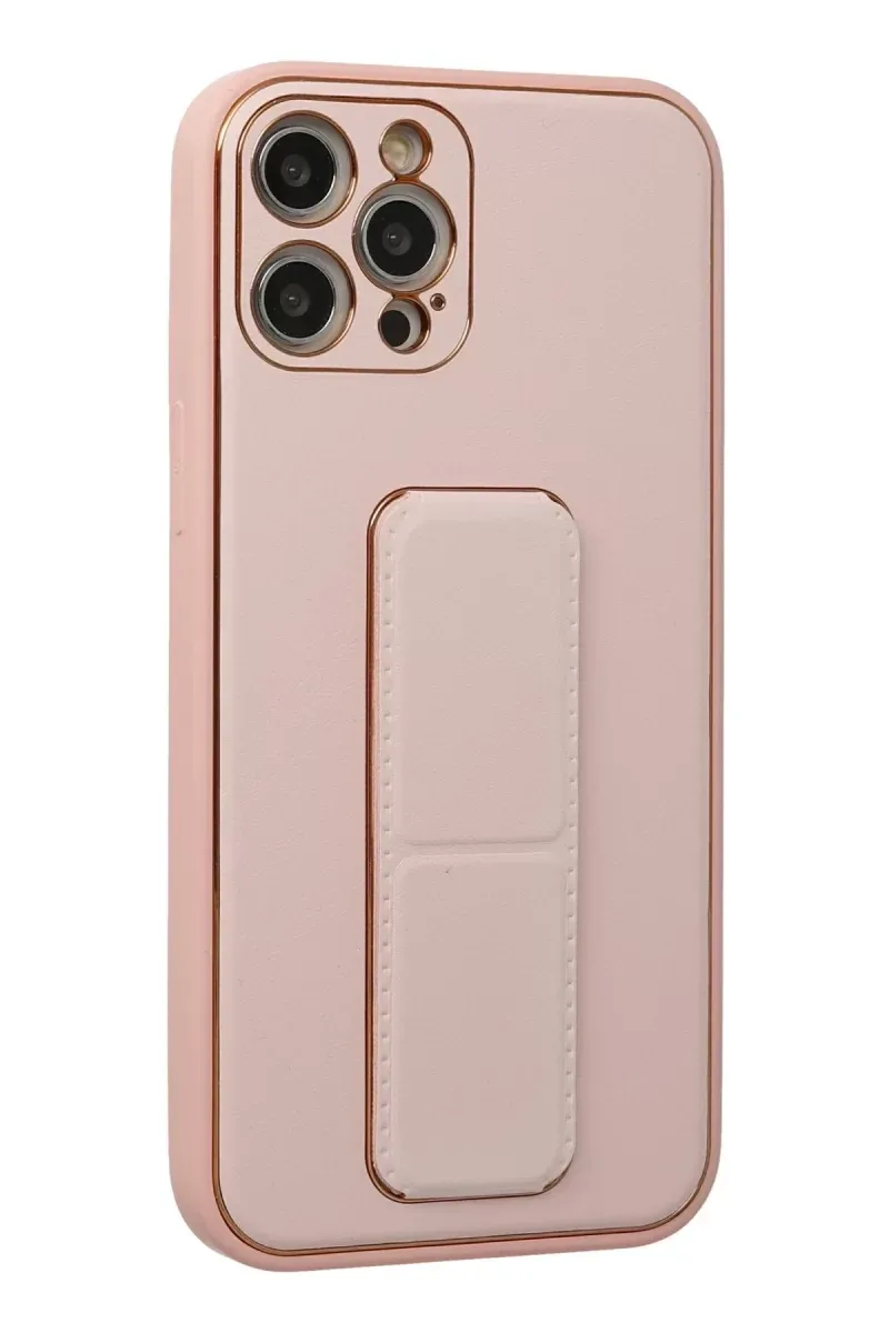 Newface iPhone 12 Pro Kılıf Coco Deri Standlı Kapak - Pembe