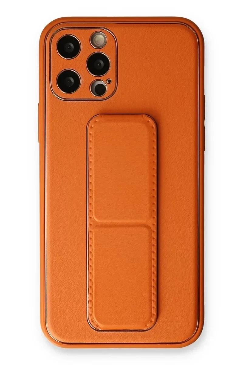 Newface iPhone 12 Pro Kılıf Coco Deri Standlı Kapak - Turuncu