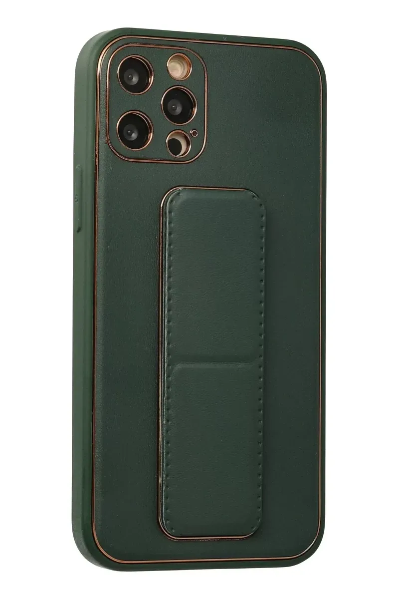 Newface iPhone 12 Pro Kılıf Coco Deri Standlı Kapak - Yeşil