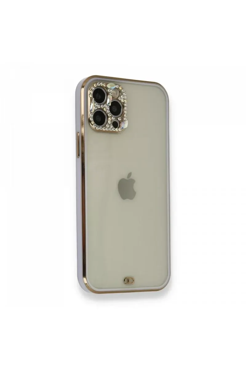 Newface iPhone 12 Pro Kılıf Liva Taşlı Silikon - Mor