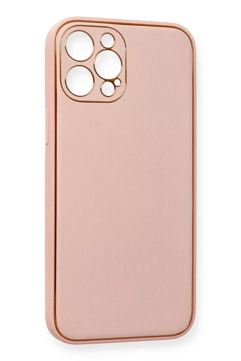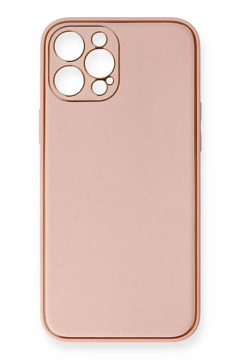 Newface iPhone 12 Pro Max Kılıf Coco Deri Silikon Kapak - Pembe