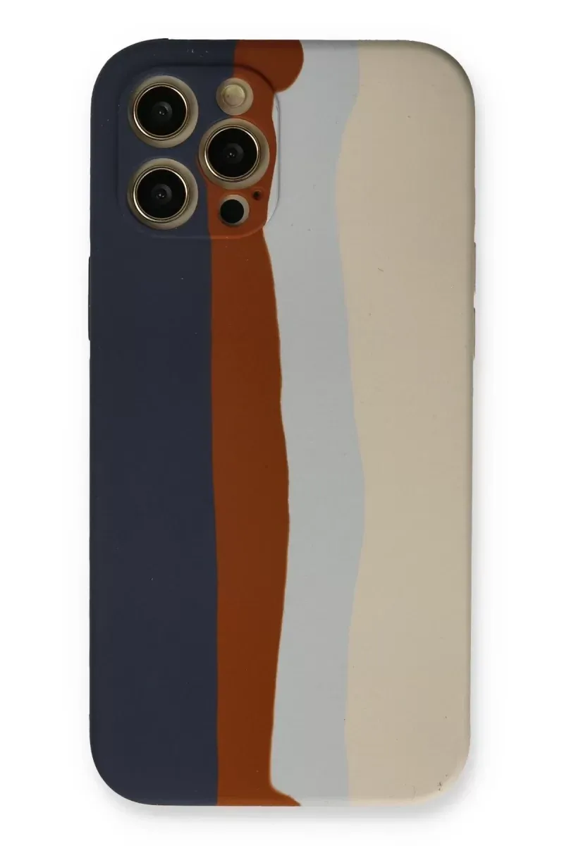 Newface iPhone 12 Pro Max Kılıf Ebruli Lansman Silikon - Lacivert-Krem