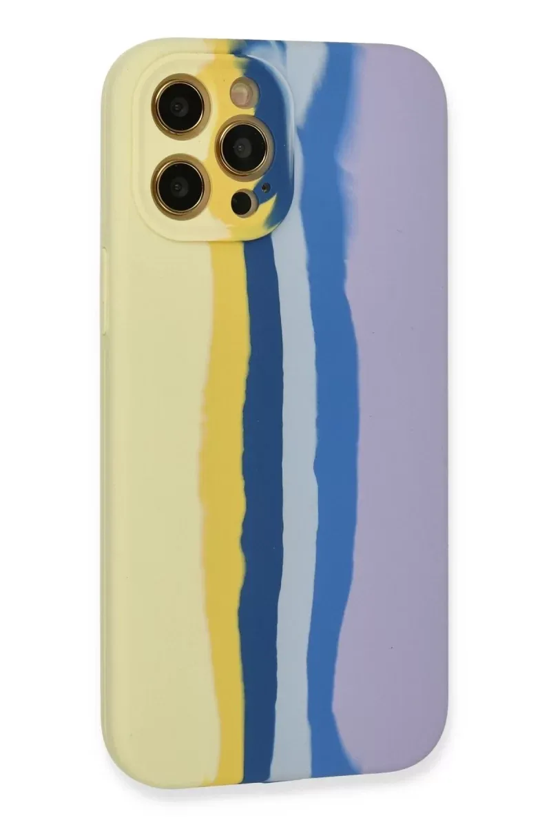Newface iPhone 12 Pro Max Kılıf Ebruli Lansman Silikon - Sarı-Lila