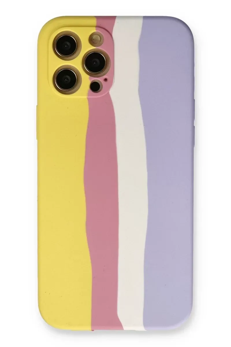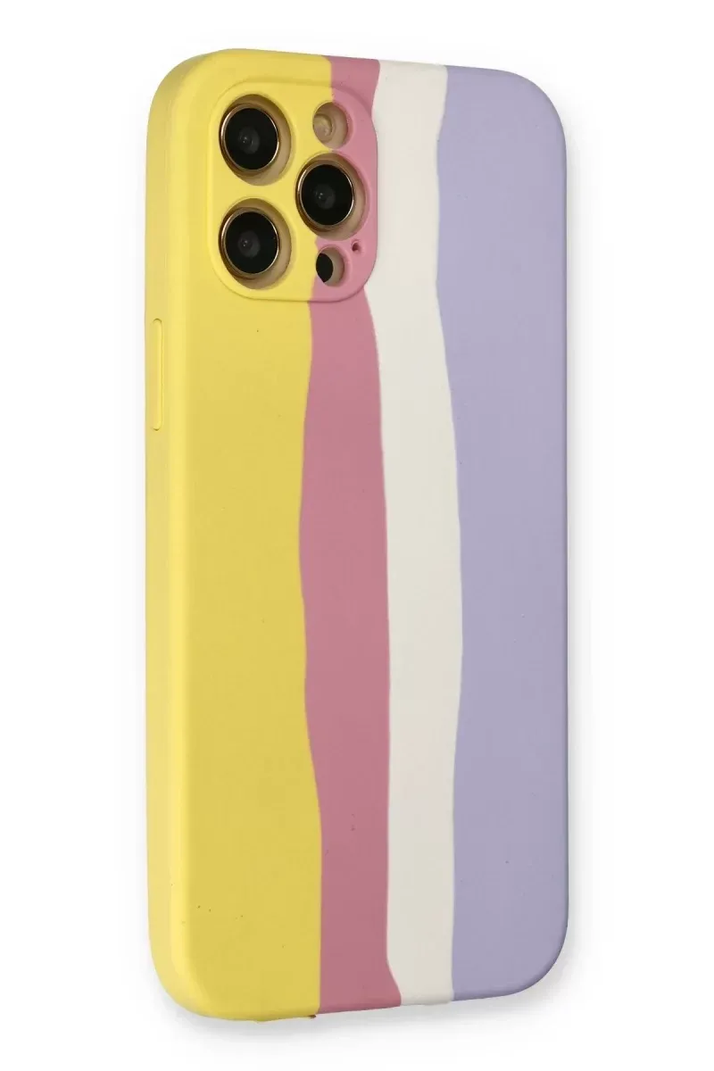 Newface iPhone 12 Pro Max Kılıf Ebruli Lansman Silikon - Sarı-Mavi