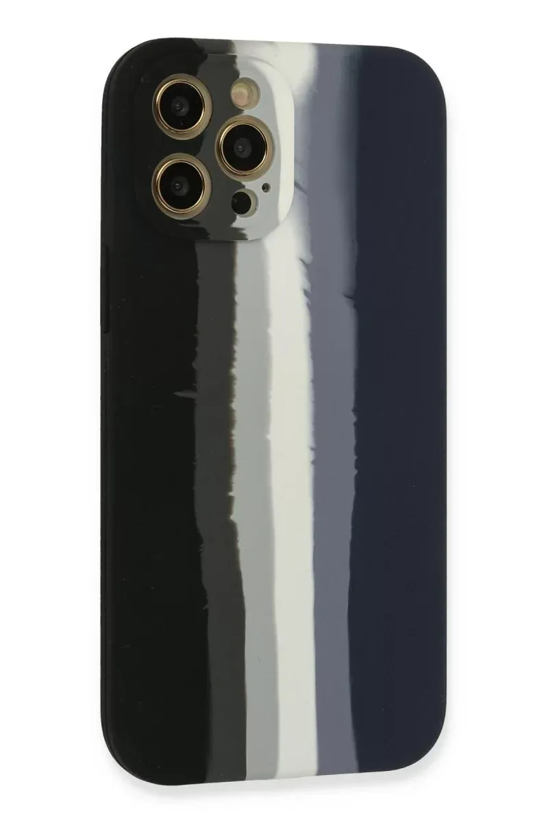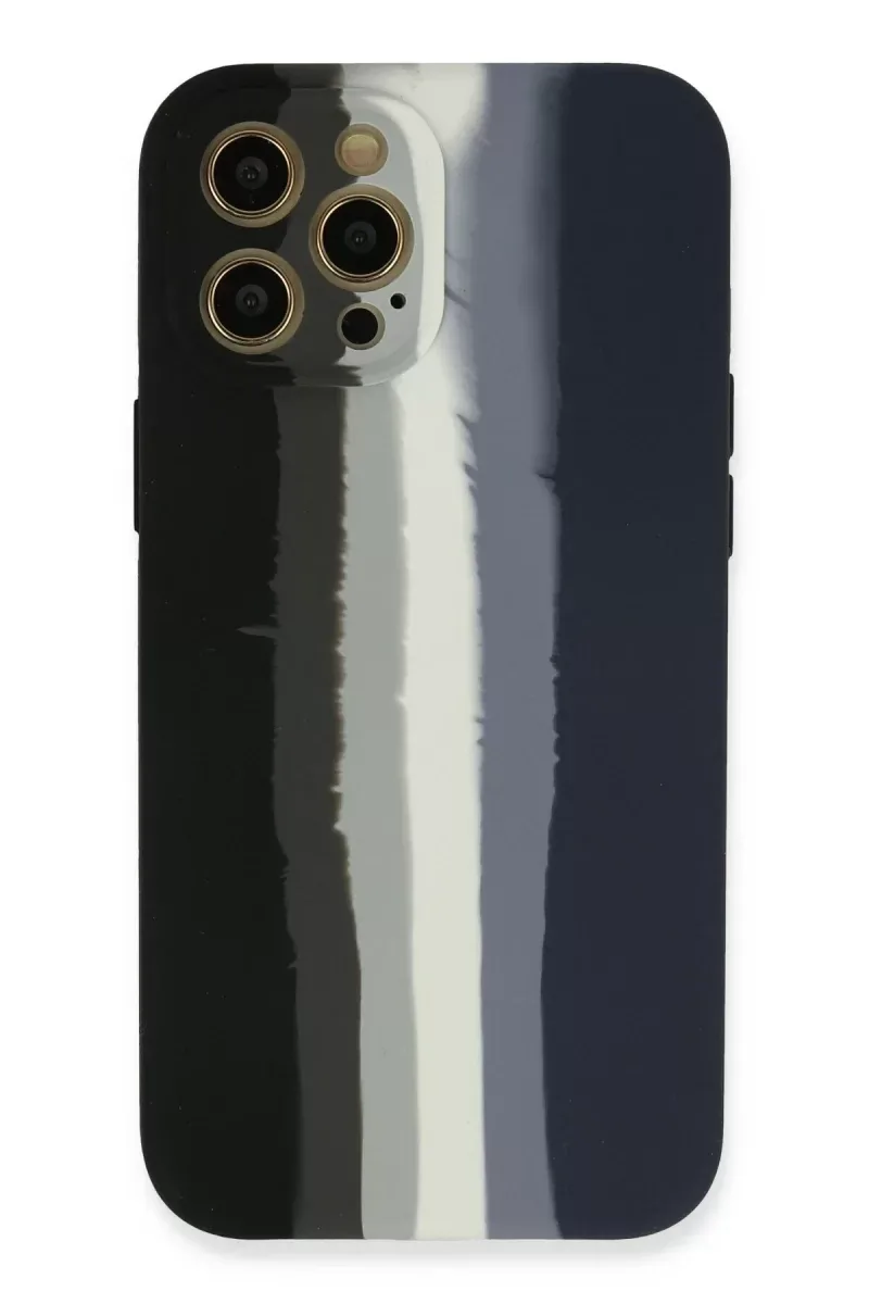 Newface iPhone 12 Pro Max Kılıf Ebruli Lansman Silikon - Siyah-Lacivert