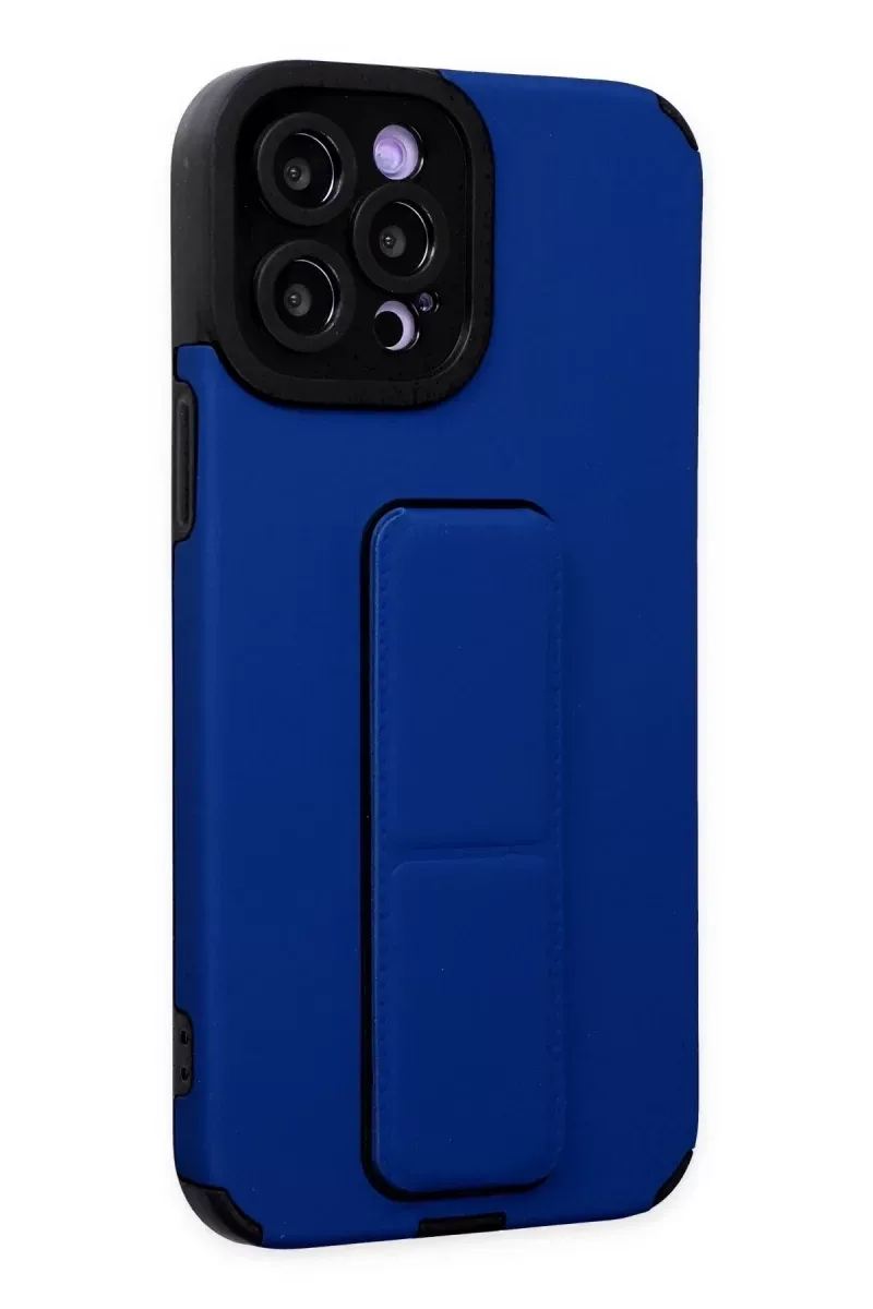 Newface iPhone 12 Pro Max Kılıf Mega Standlı Silikon - Mavi