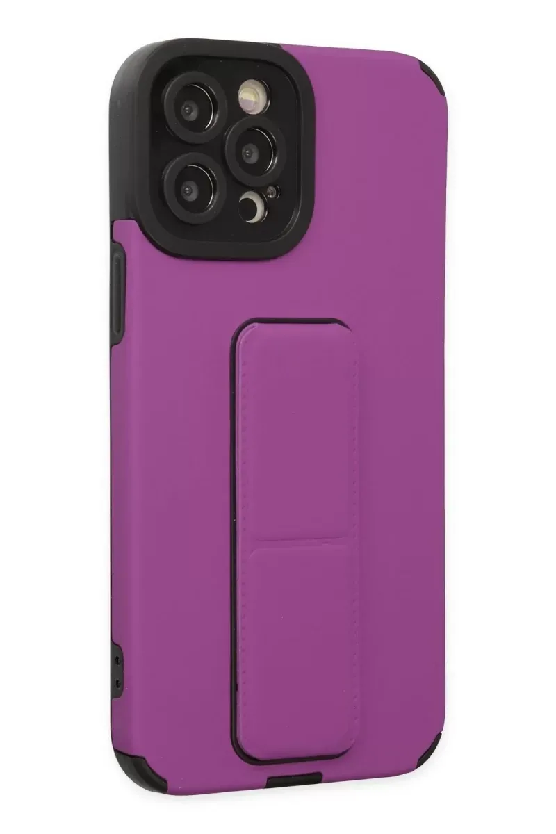 Newface iPhone 12 Pro Max Kılıf Mega Standlı Silikon - Mor