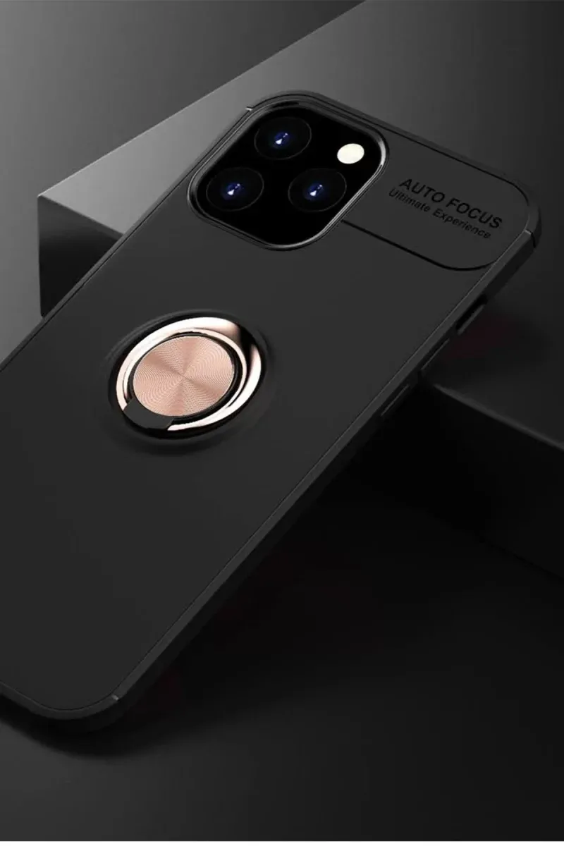 Newface iPhone 12 Pro Max Kılıf Range Yüzüklü Silikon - Siyah-Gold