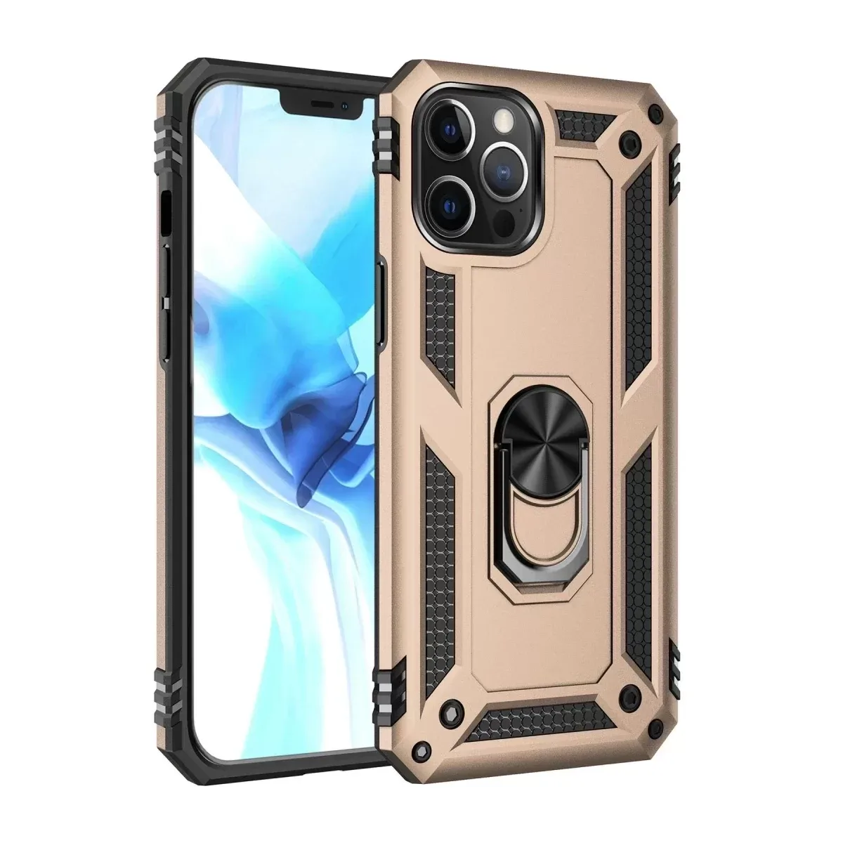 Newface iPhone 12 Pro Max Kılıf Sofya Yüzüklü Silikon Kapak - Gold