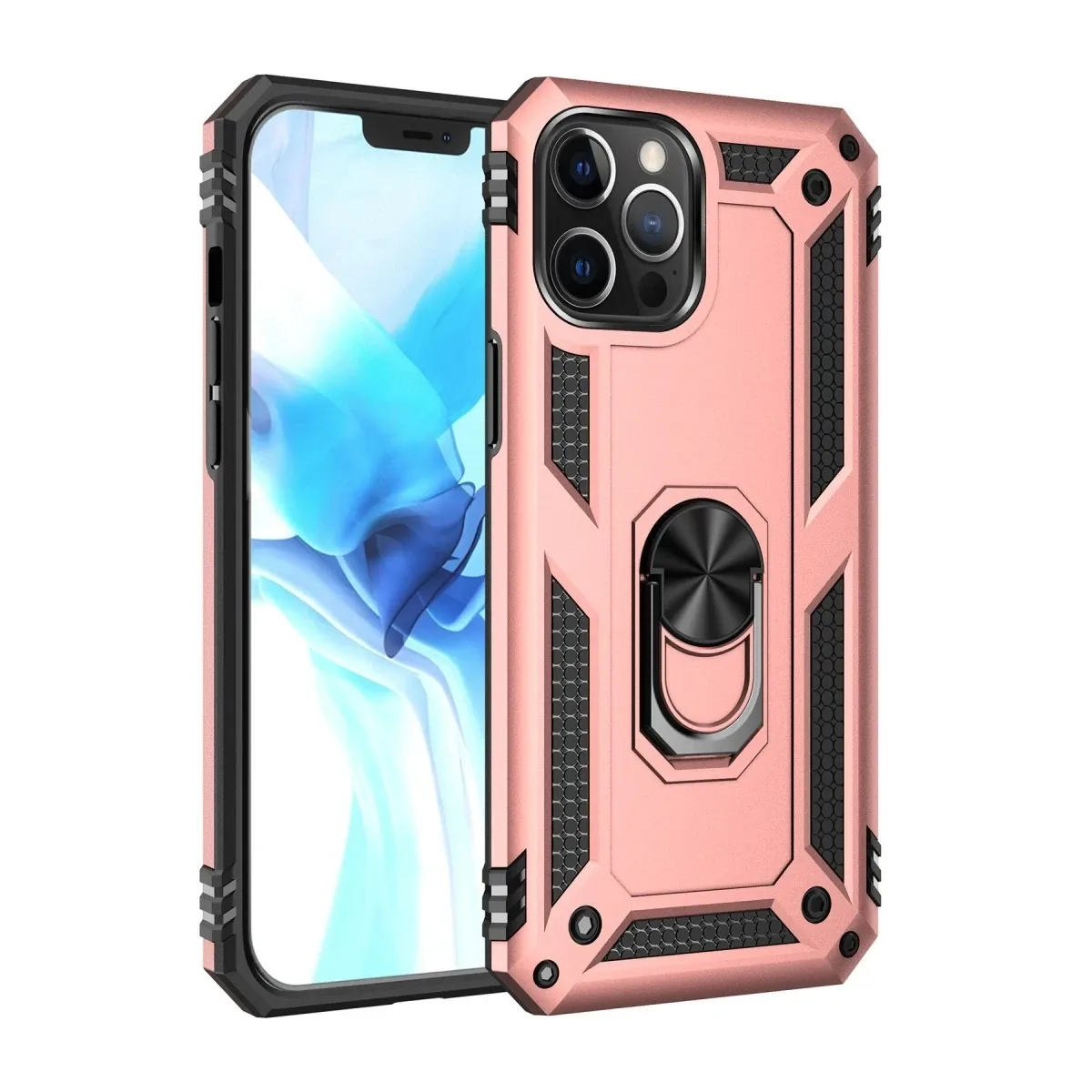 Newface iPhone 12 Pro Max Kılıf Sofya Yüzüklü Silikon Kapak - Rose