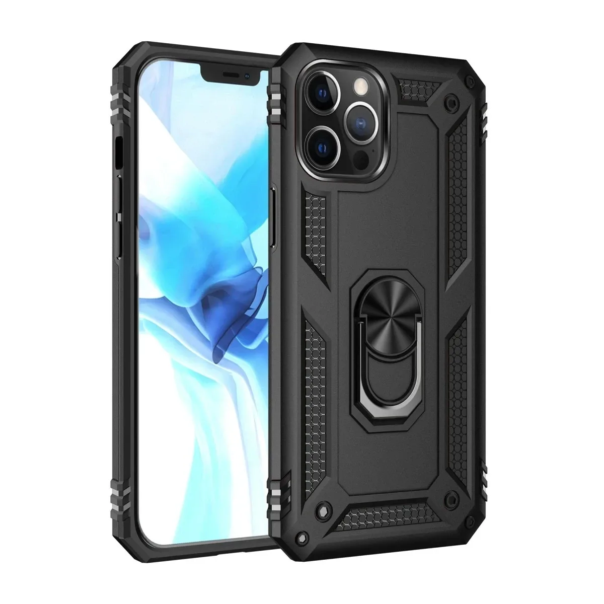Newface iPhone 12 Pro Max Kılıf Sofya Yüzüklü Silikon Kapak - Siyah