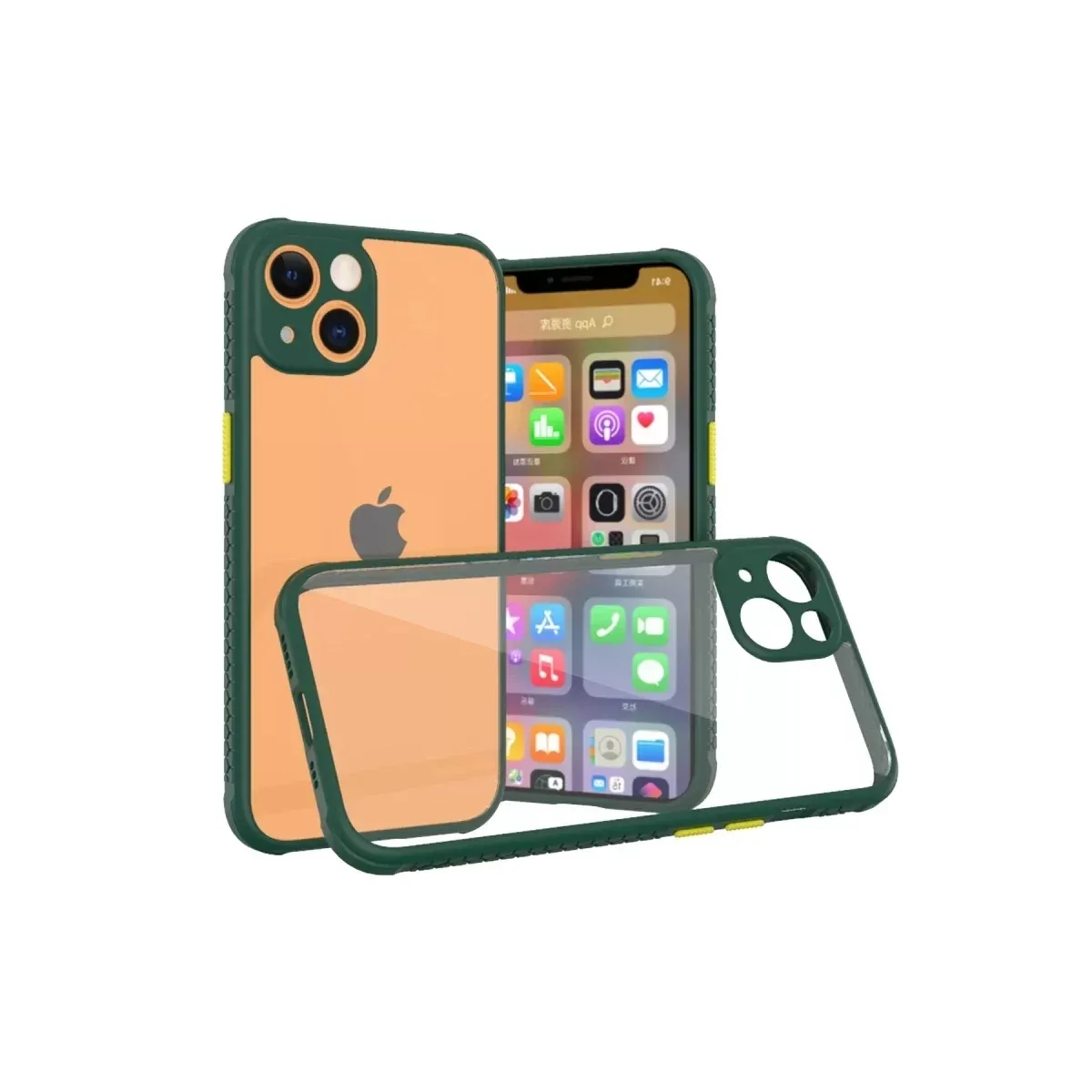Newface iPhone 13 Mini Kılıf Miami Şeffaf Silikon - Koyu Yeşil
