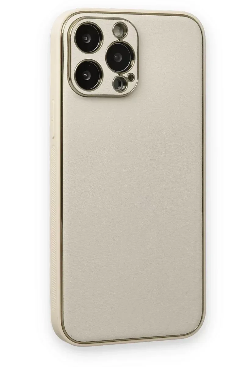 Newface iPhone 13 Pro Kılıf Coco Deri Silikon Kapak - Beyaz