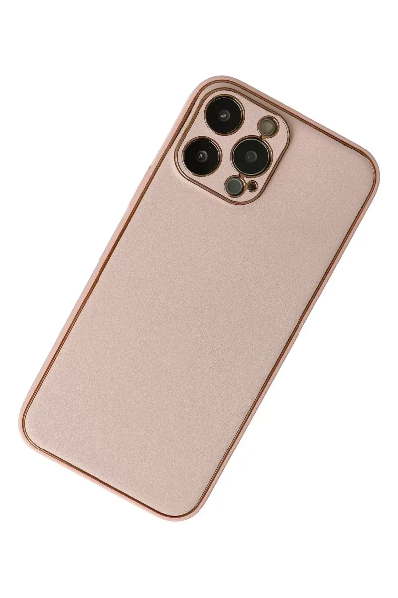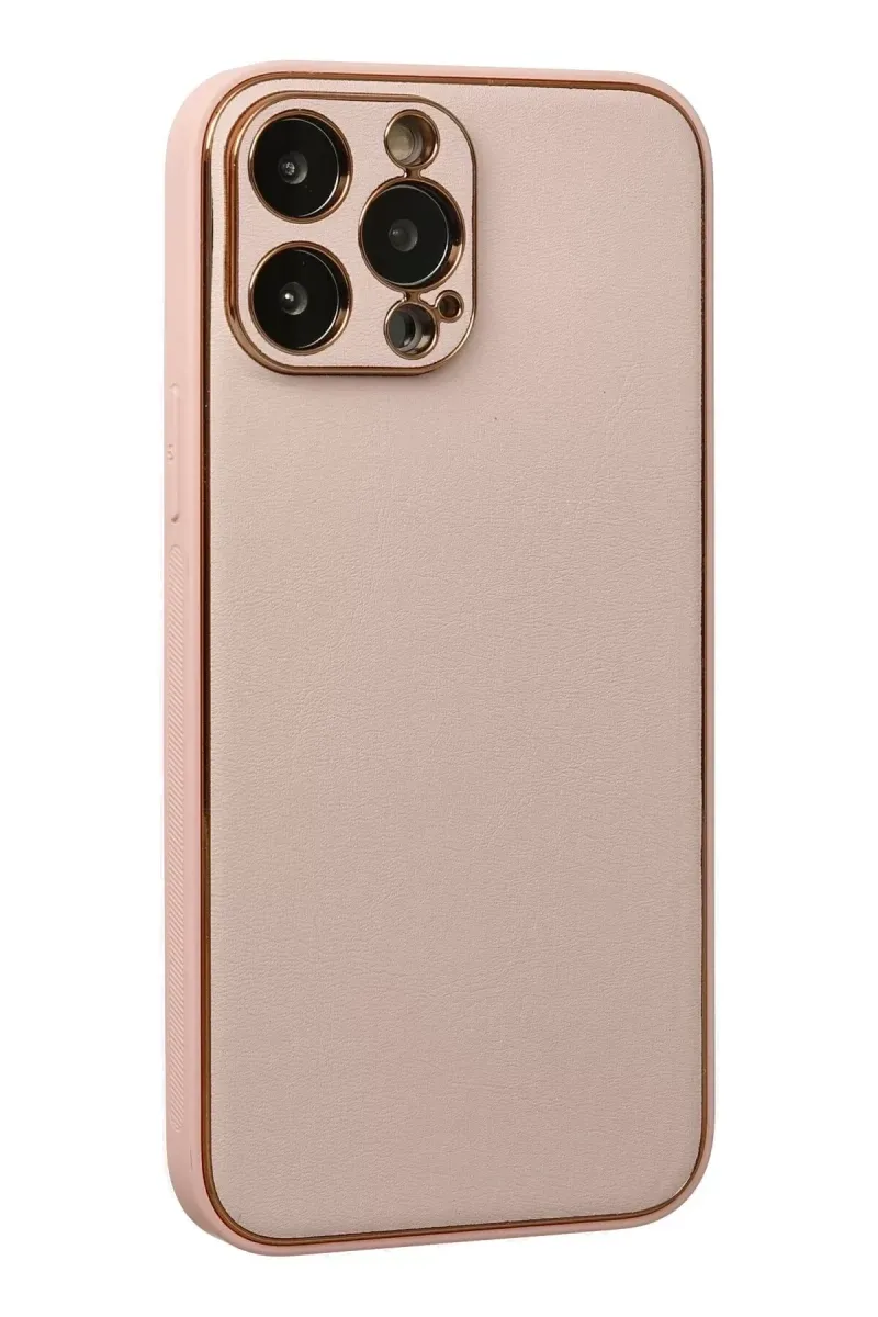 Newface iPhone 13 Pro Kılıf Coco Deri Silikon Kapak - Pudra