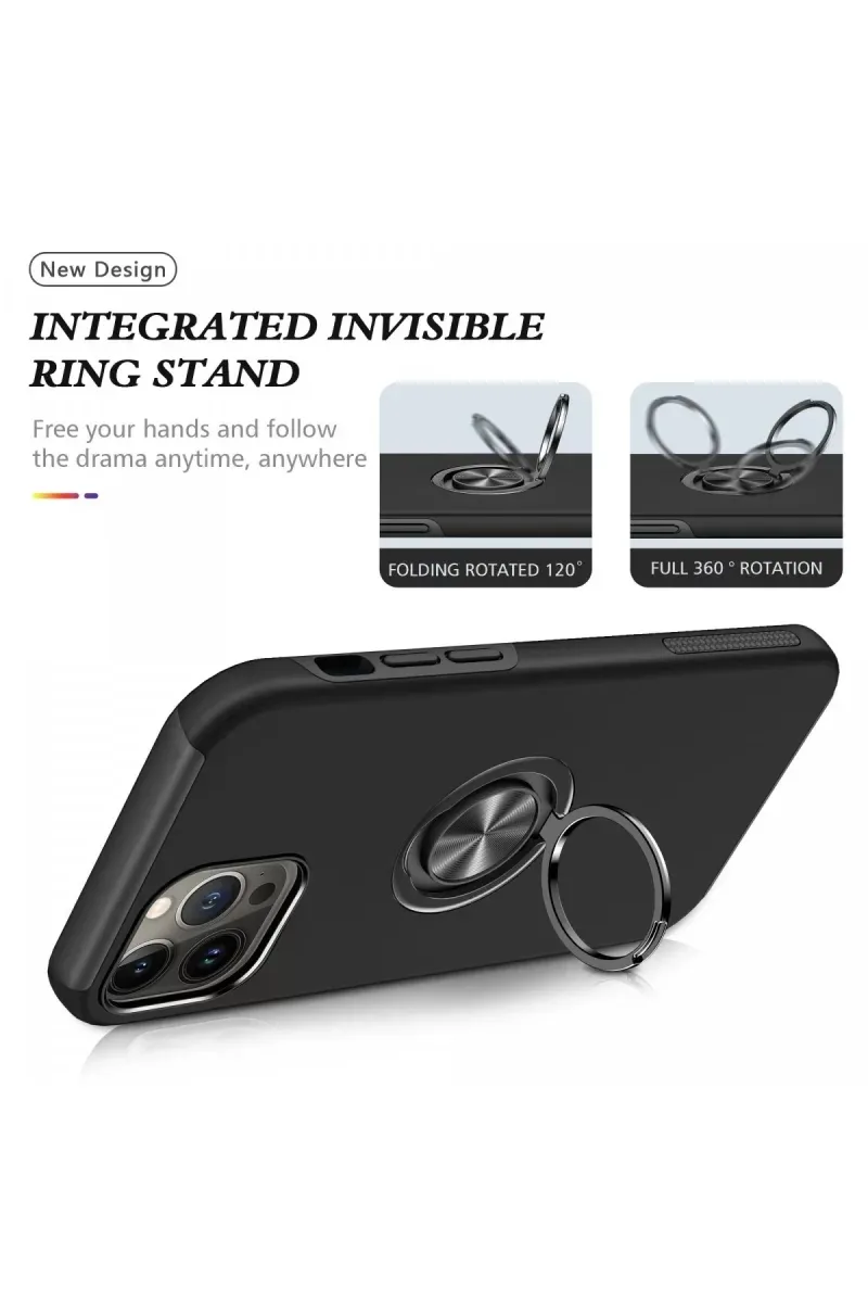 Newface iPhone 13 Pro Max Kılıf Elit Yüzüklü Kapak - Siyah