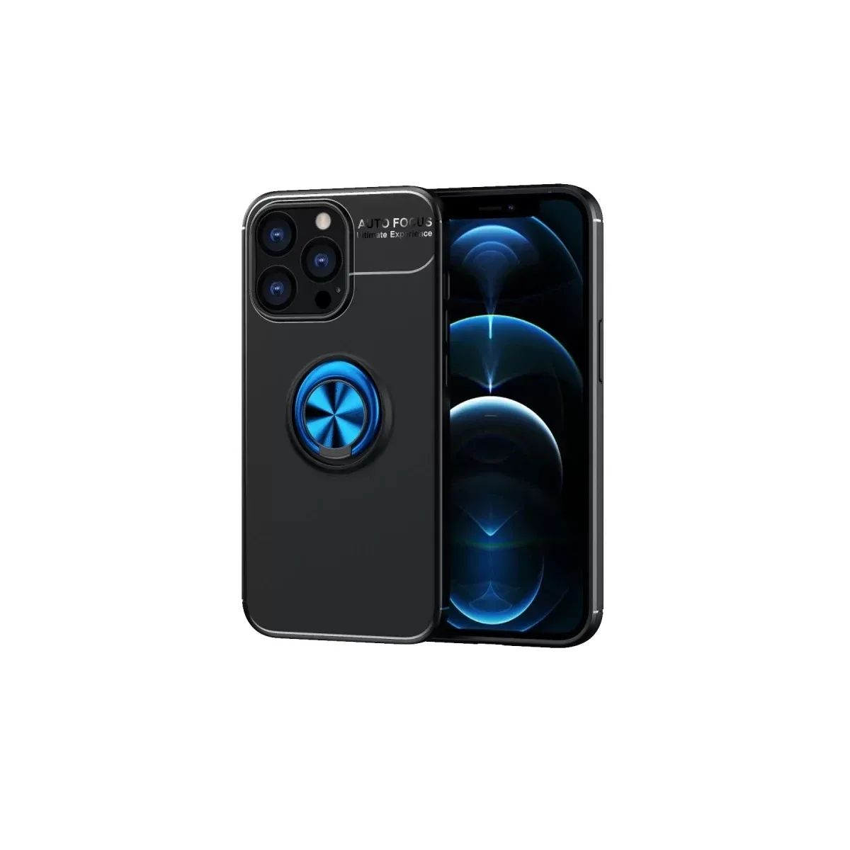 Newface iPhone 13 Pro Max Kılıf Range Yüzüklü Silikon - Siyah-Mavi