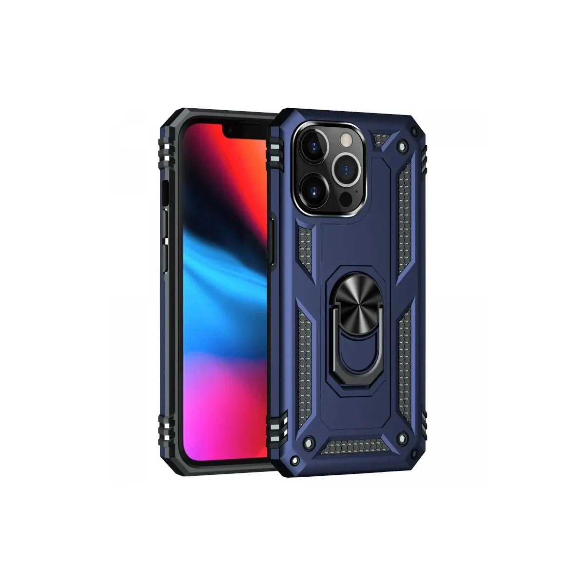 Newface iPhone 13 Pro Max Kılıf Sofya Yüzüklü Silikon Kapak - Lacivert