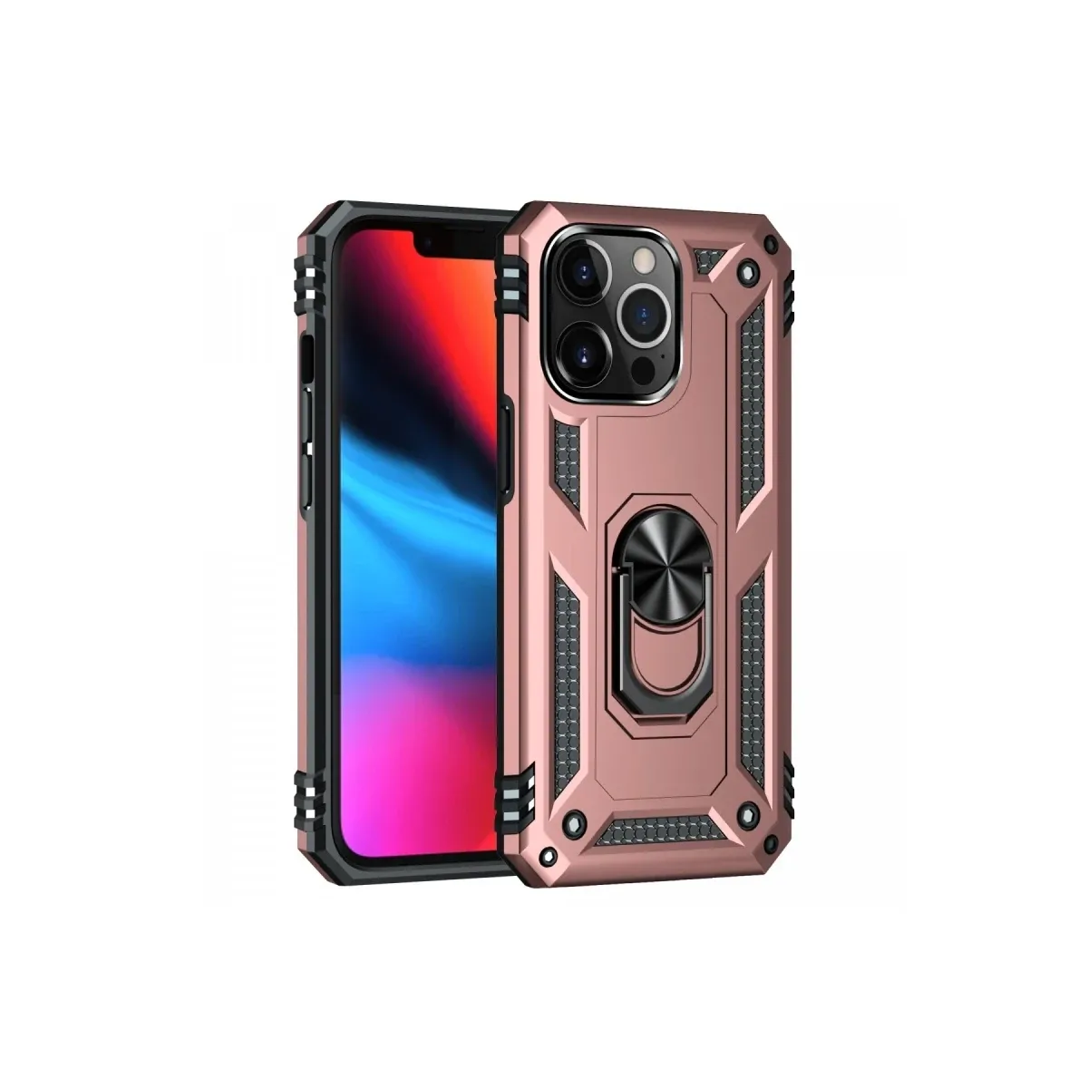 Newface iPhone 13 Pro Max Kılıf Sofya Yüzüklü Silikon Kapak - Rose