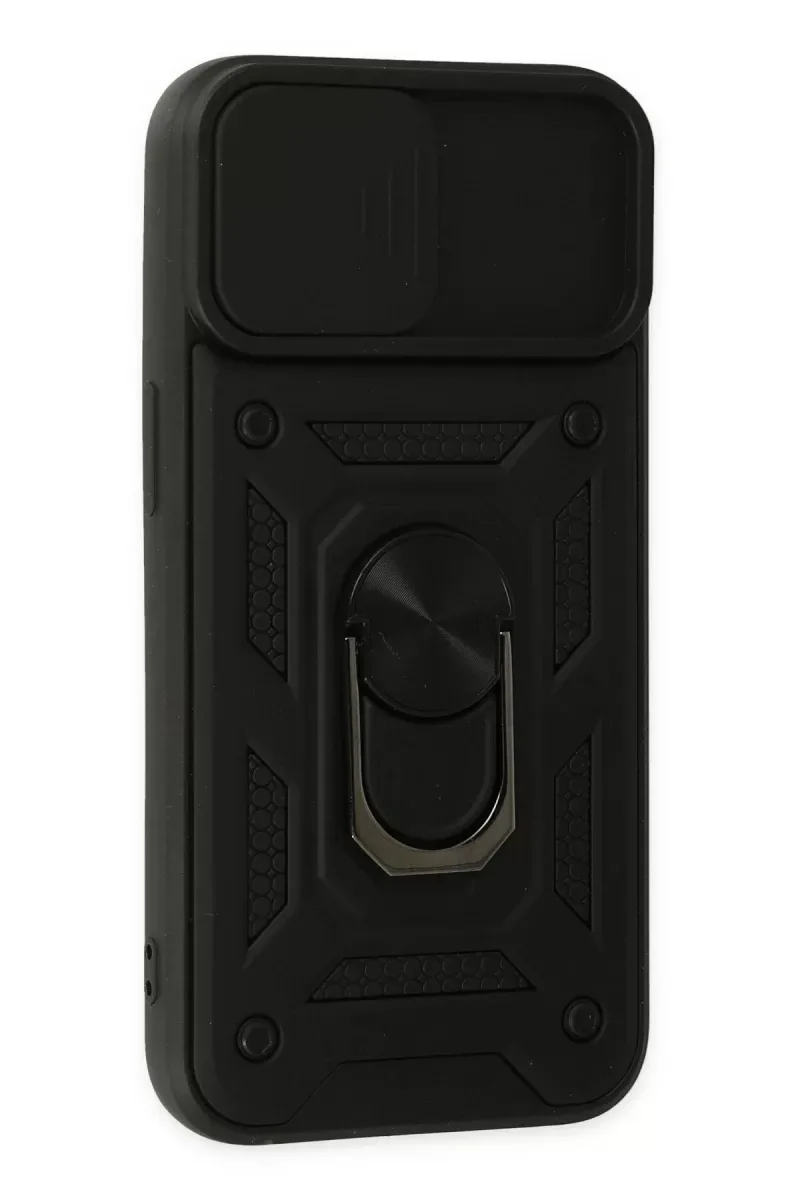 Newface iPhone 14 Kılıf Pars Lens Yüzüklü Silikon - Siyah