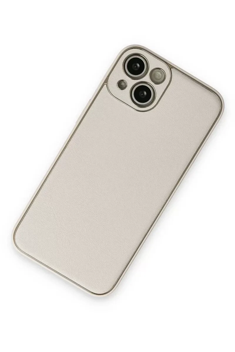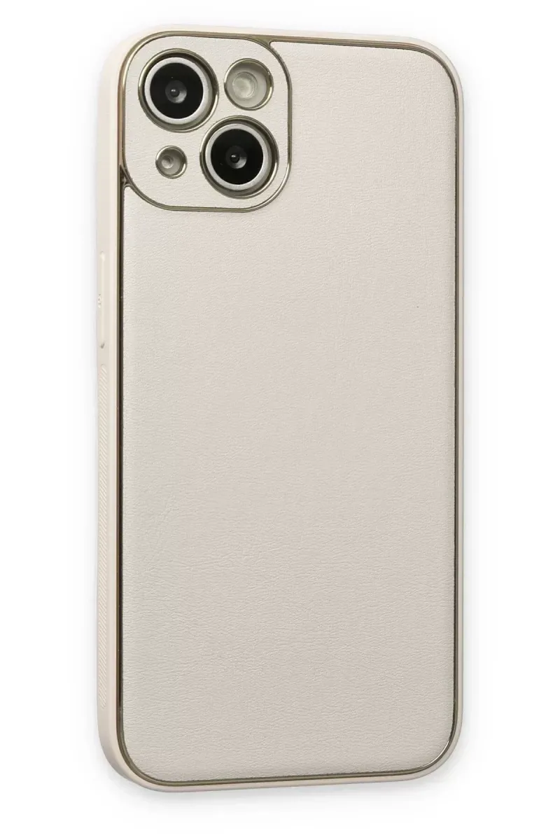 Newface iPhone 14 Plus Kılıf Coco Deri Silikon Kapak - Beyaz