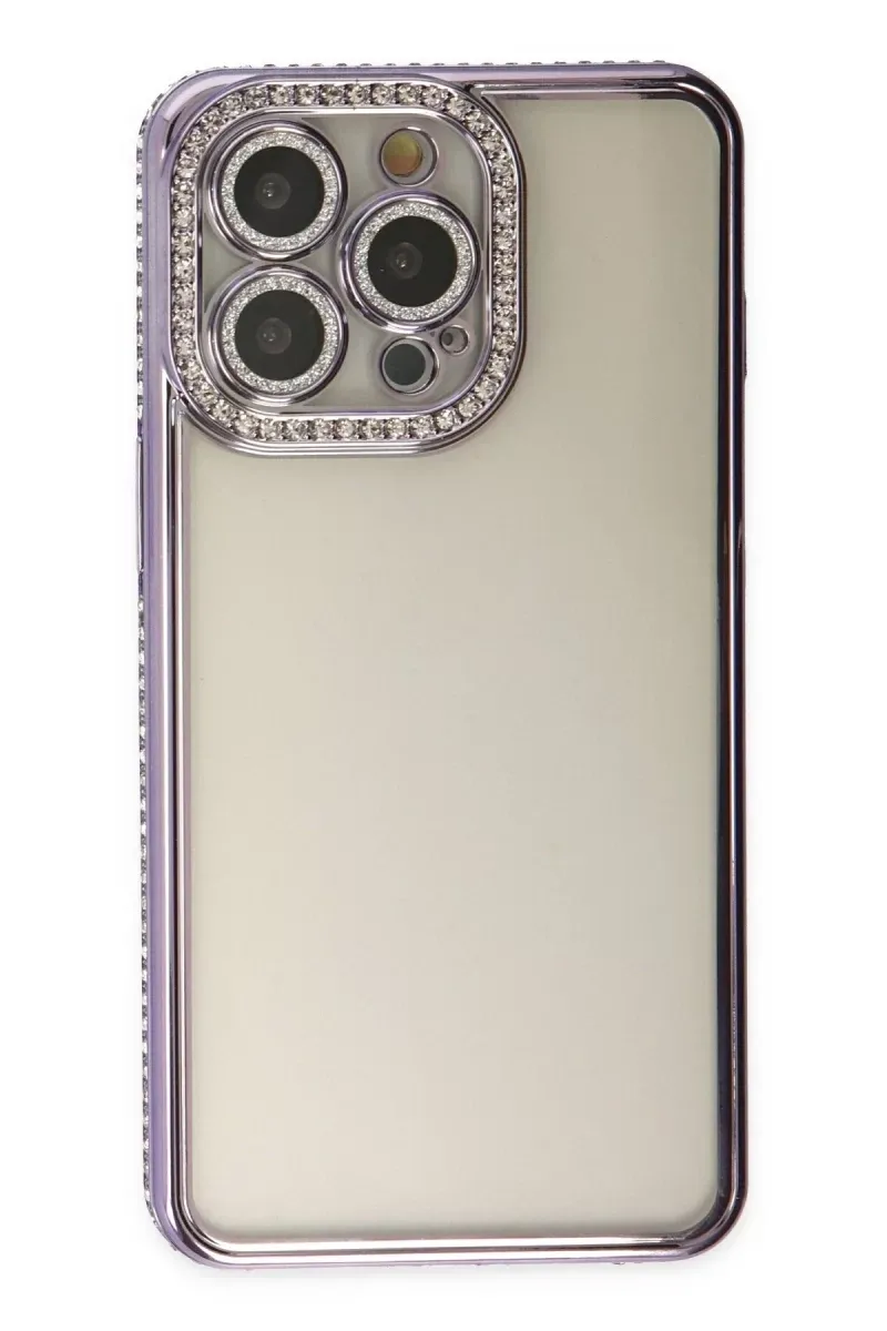 Newface iPhone 14 Pro Kılıf Joke Taşlı Silikon - Mor
