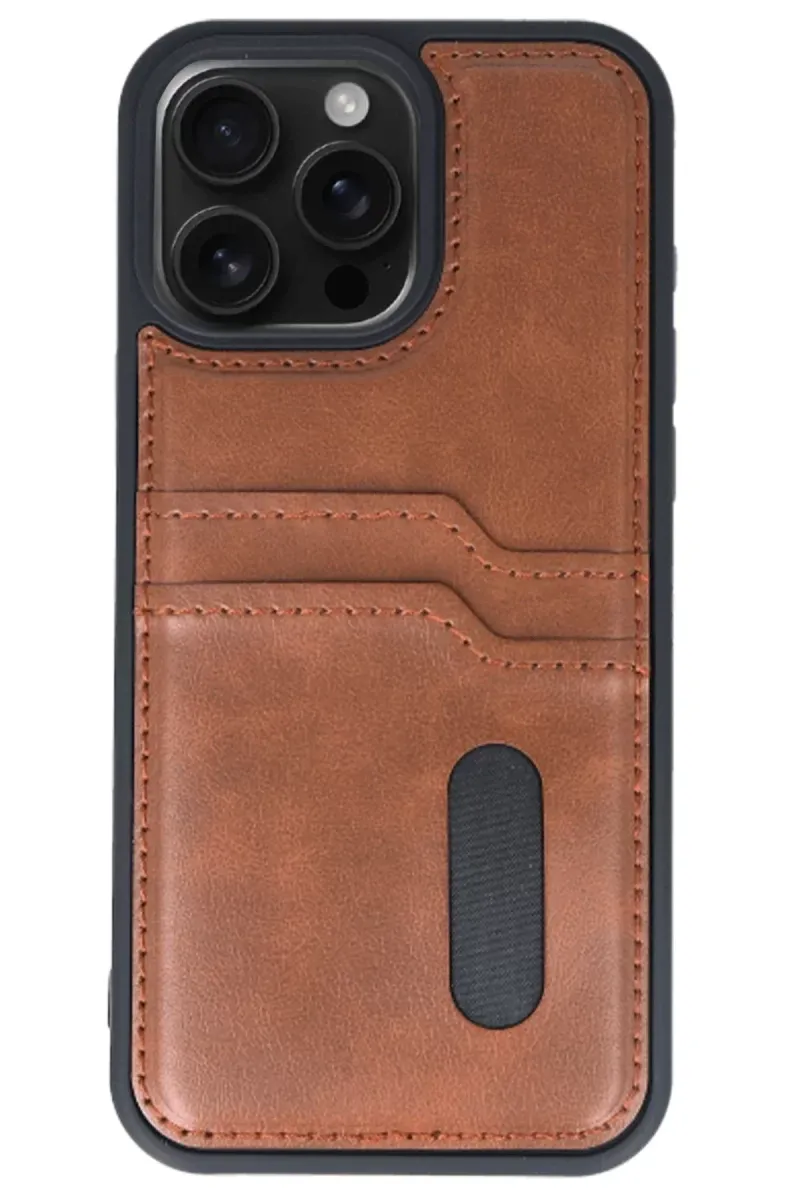 Newface iPhone 14 Pro Max Kılıf Sara Kartvizitli Deri Kılıf - Taba