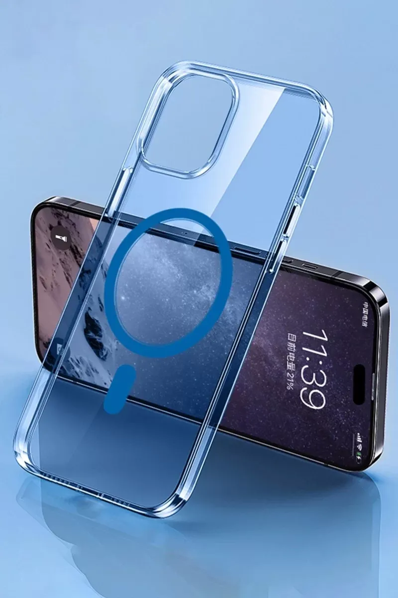 Newface iPhone 14 Pro Max Kılıf Tron Şeffaf Magsafe Kapak - Mavi