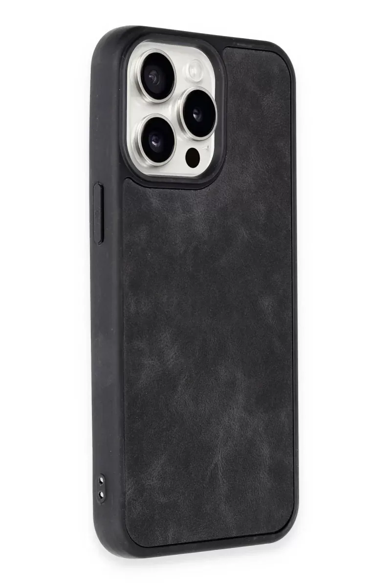 Newface iPhone 15 Pro Kılıf Aras Deri Kapak - Siyah