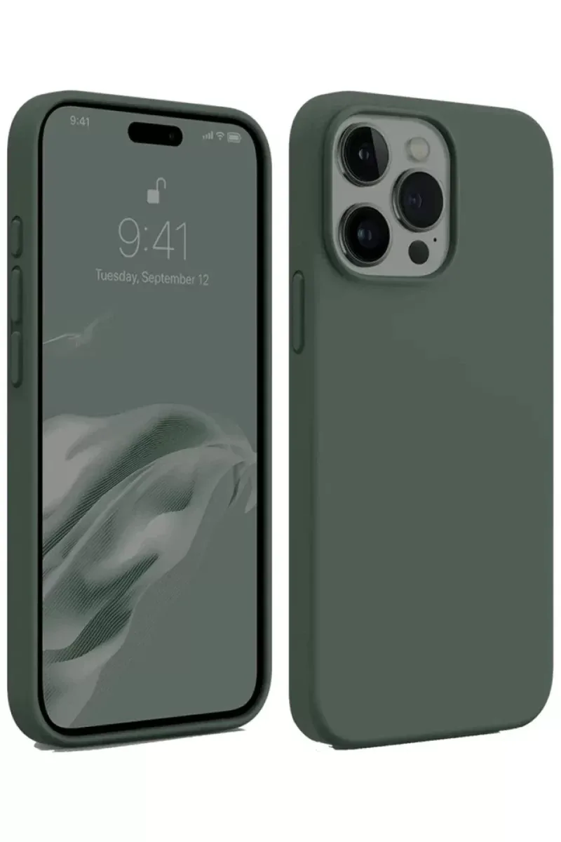 Newface iPhone 15 Pro Max Kılıf First Silikon - Koyu Yeşil