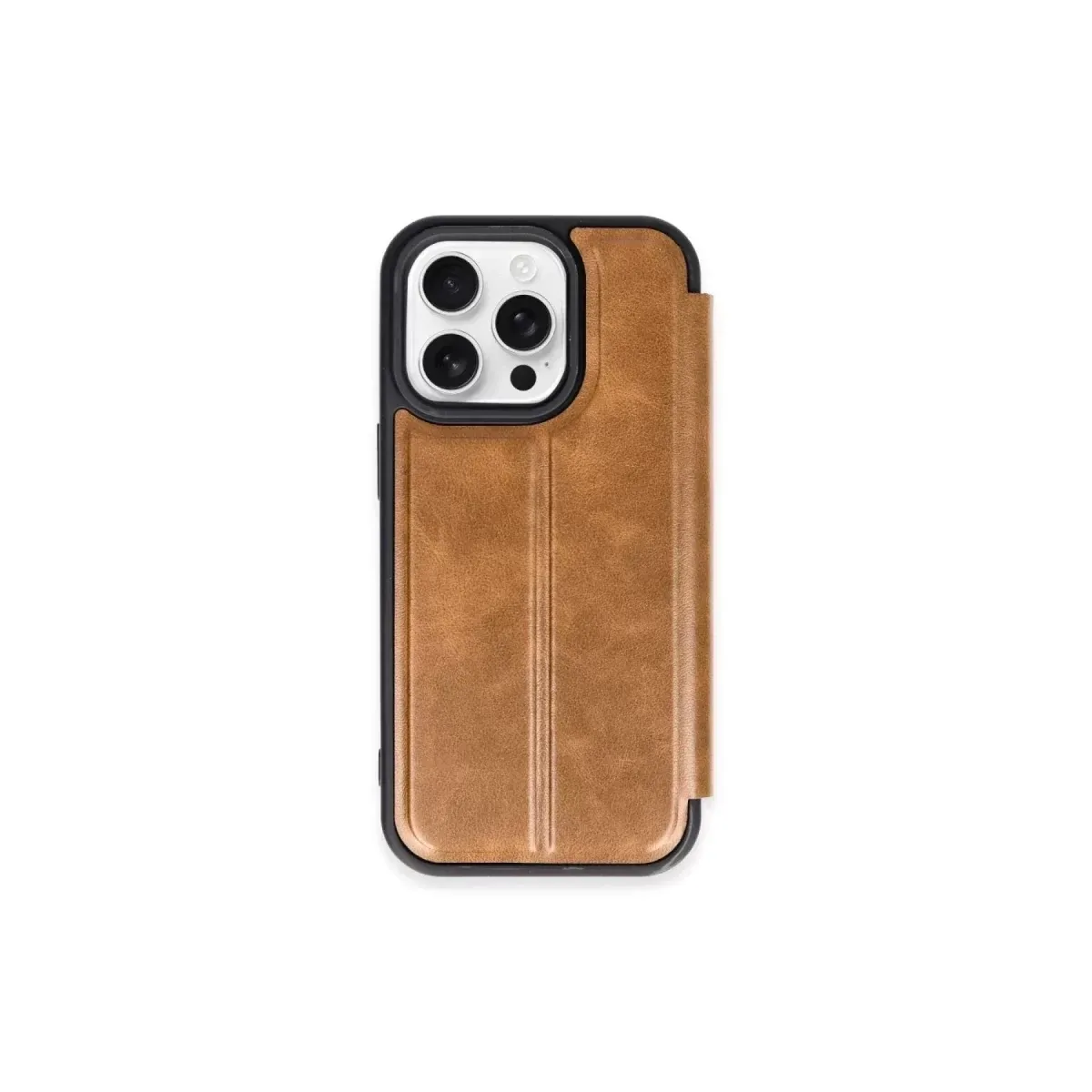 Newface iPhone 15 Pro Max Kılıf Flip Cover - Taba