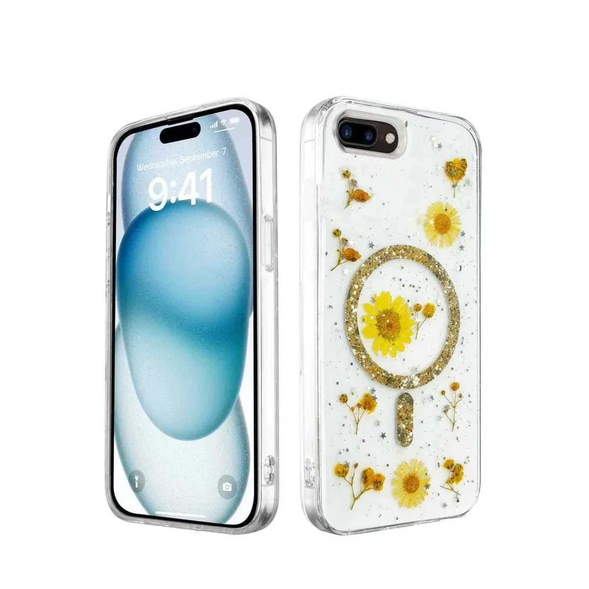 Newface iPhone 7 Kılıf Daisy Simli Magsafe Kapak - Gold