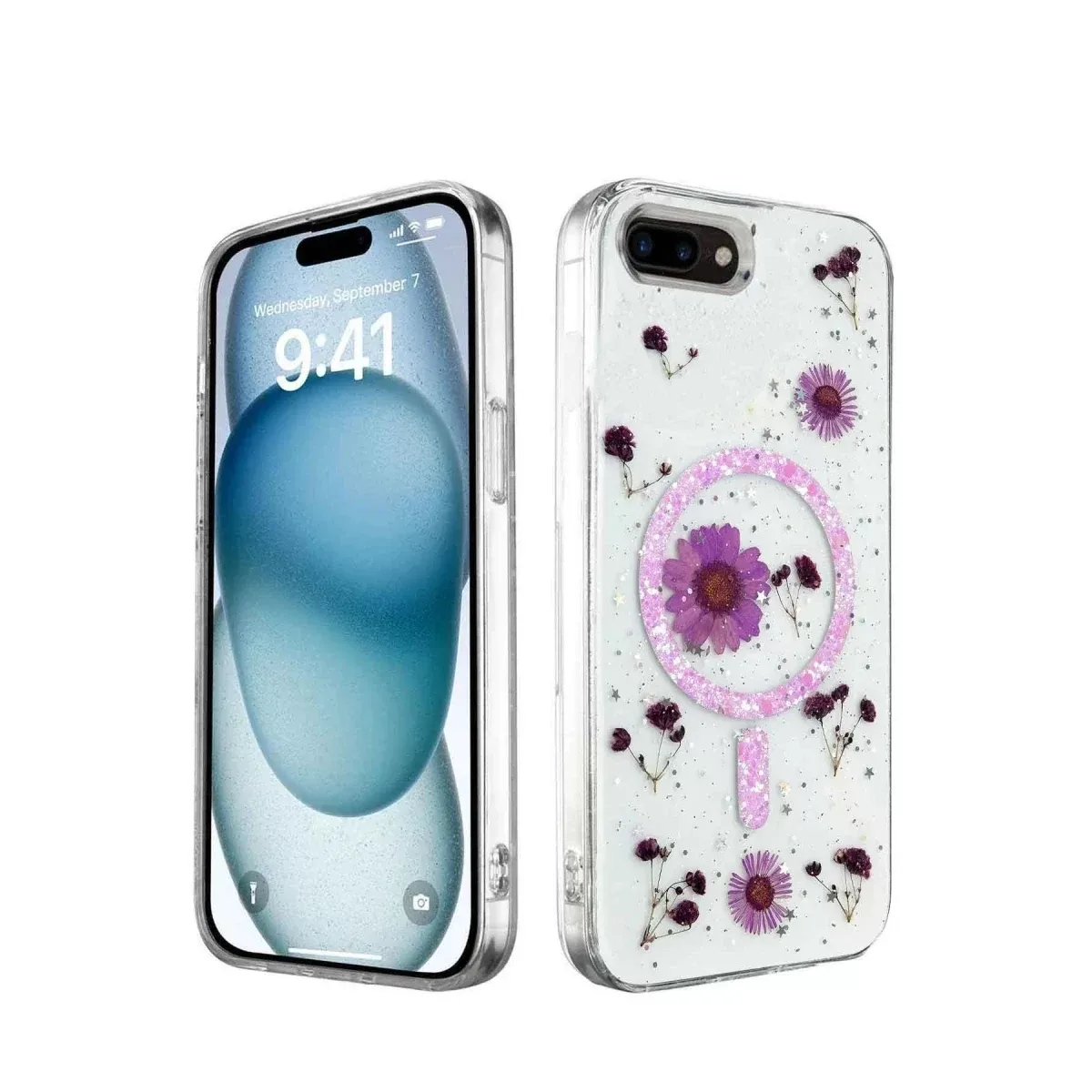 Newface iPhone 7 Plus Kılıf Daisy Simli Magsafe Kapak - Mor