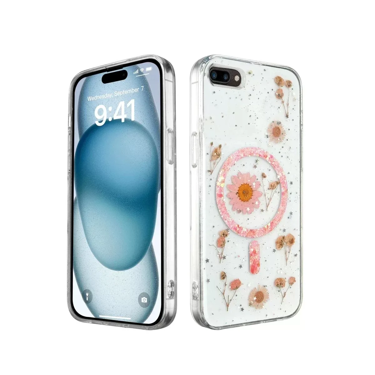 Newface iPhone 7 Plus Kılıf Daisy Simli Magsafe Kapak - Pembe