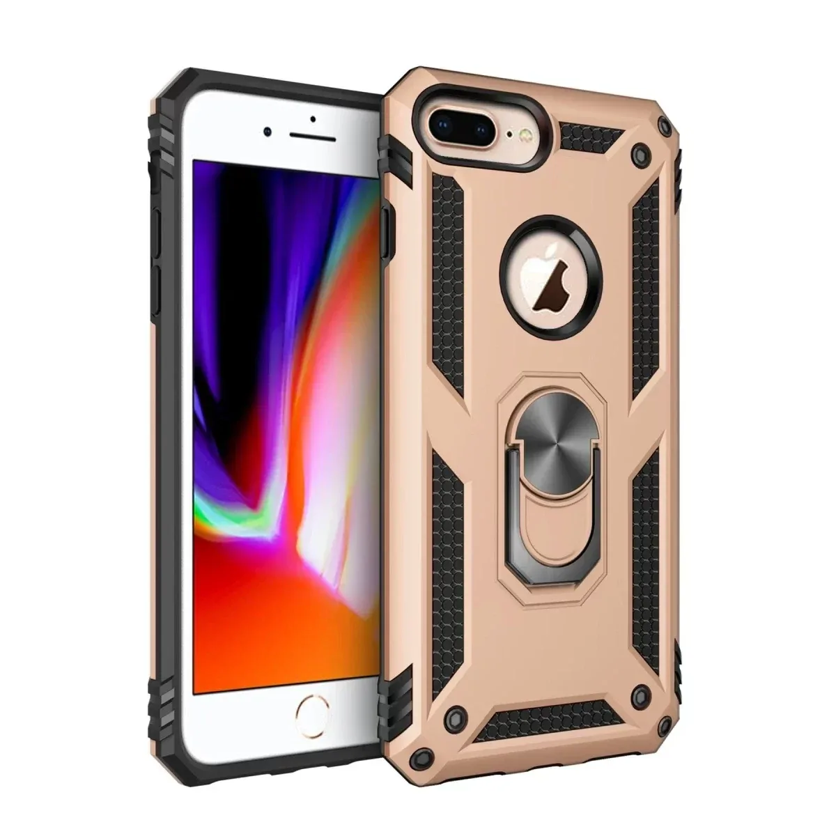 Newface iPhone 7 Plus Kılıf Sofya Yüzüklü Silikon Kapak - Gold