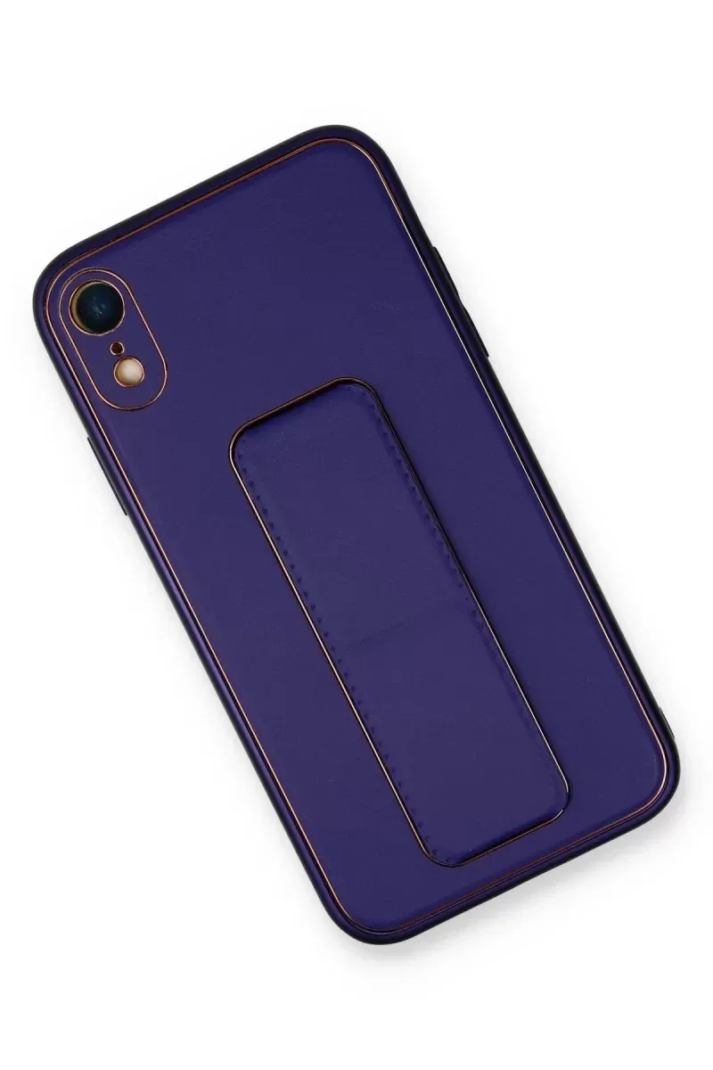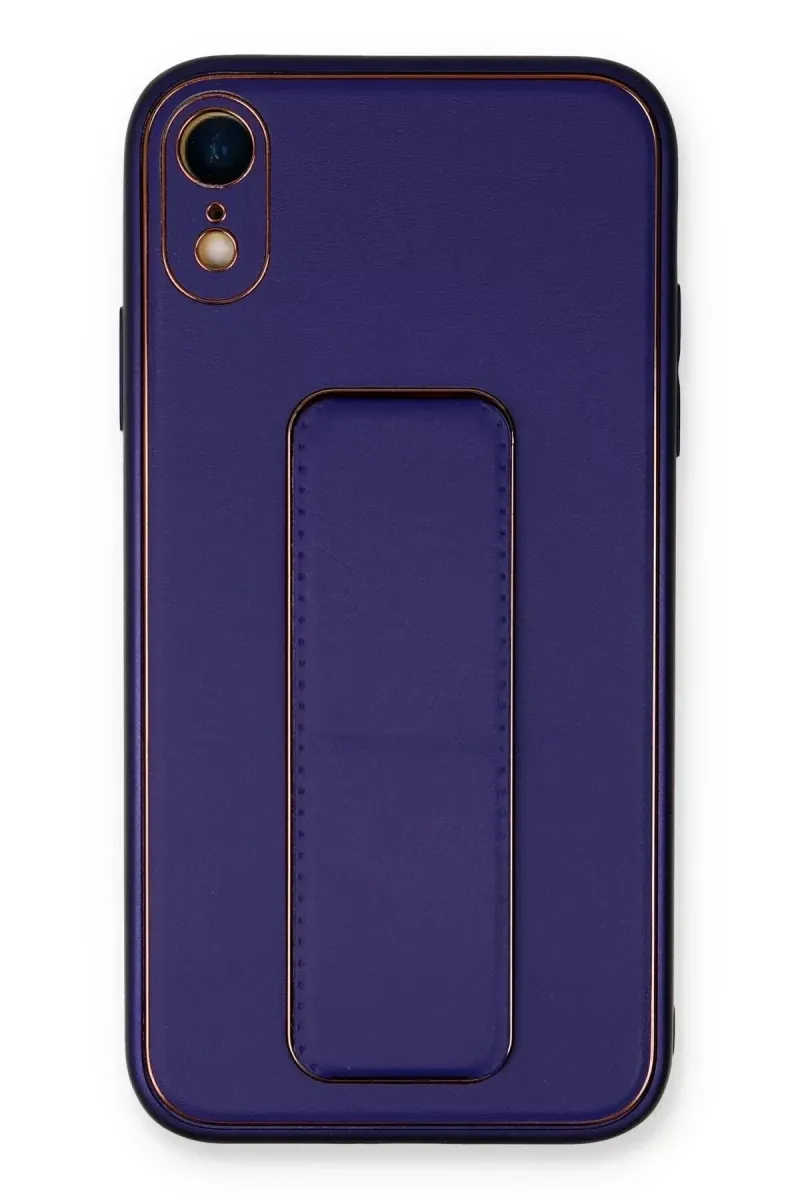 Newface iPhone XR Kılıf Coco Deri Standlı Kapak - Mor