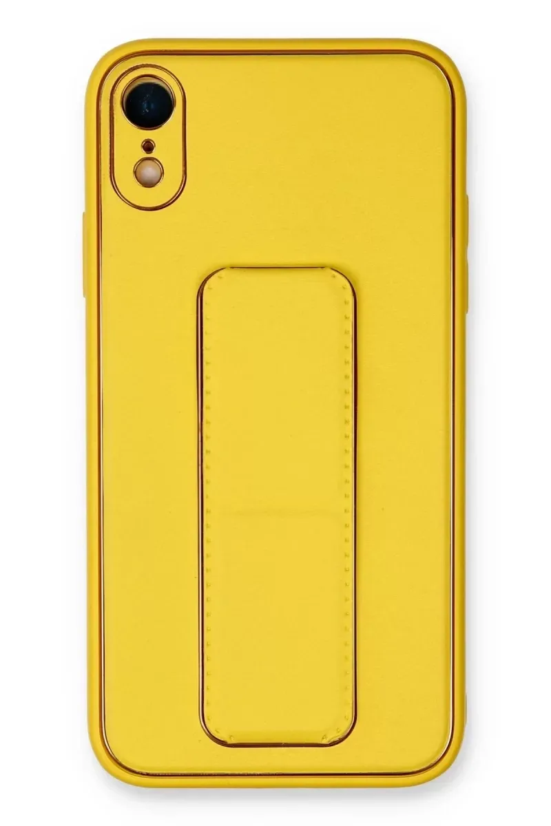 Newface iPhone XR Kılıf Coco Deri Standlı Kapak - Sarı