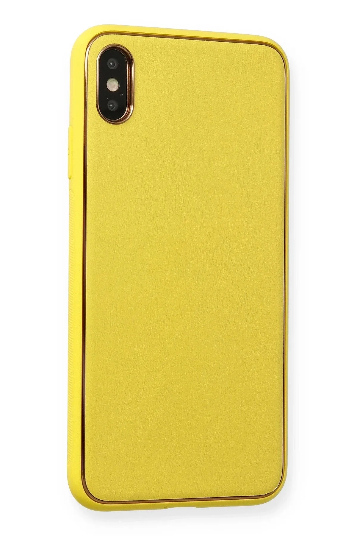 Newface iPhone XS Max Kılıf Coco Deri Silikon Kapak - Sarı
