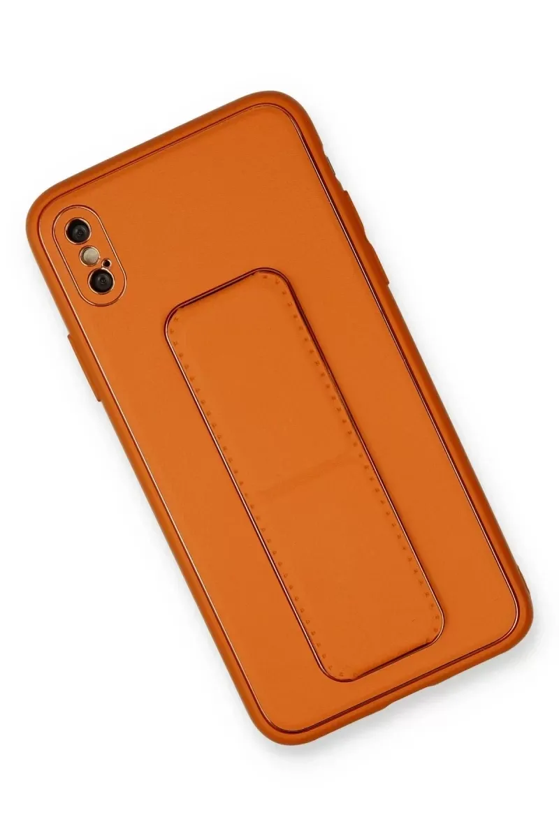Newface iPhone XS Max Kılıf Coco Deri Standlı Kapak - Turuncu