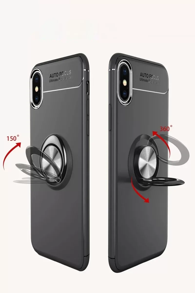 Newface iPhone XS Max Kılıf Range Yüzüklü Silikon - Siyah-Mavi