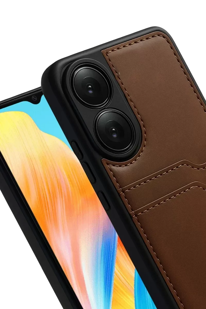 Newface Oppo A38 Sara Kartvizitli Deri Kılıf - Taba