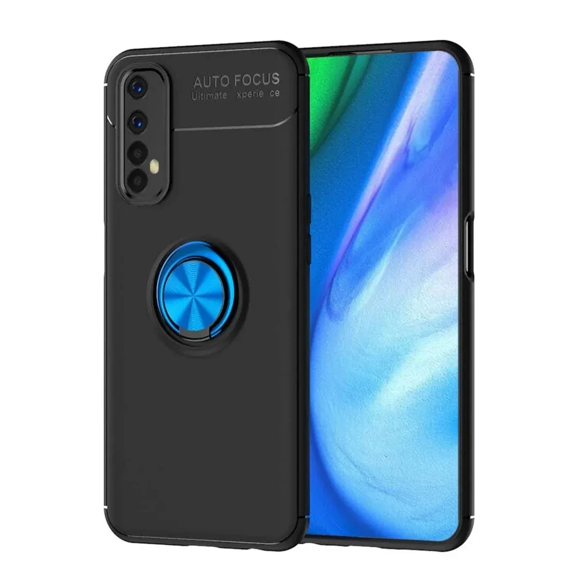 Newface Realme 7 Kılıf Range Yüzüklü Silikon - Siyah-Mavi