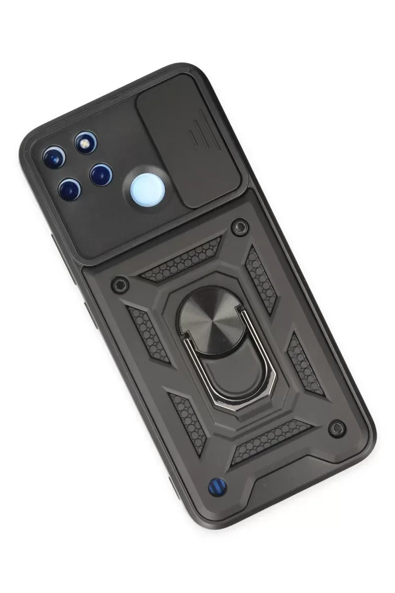 Newface Realme C25Y Kılıf Pars Lens Yüzüklü Silikon - Siyah
