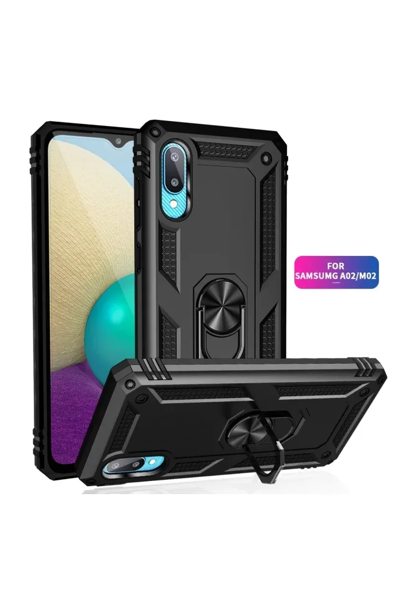 Newface Samsung Galaxy A02 Kılıf Sofya Yüzüklü Silikon Kapak - Siyah