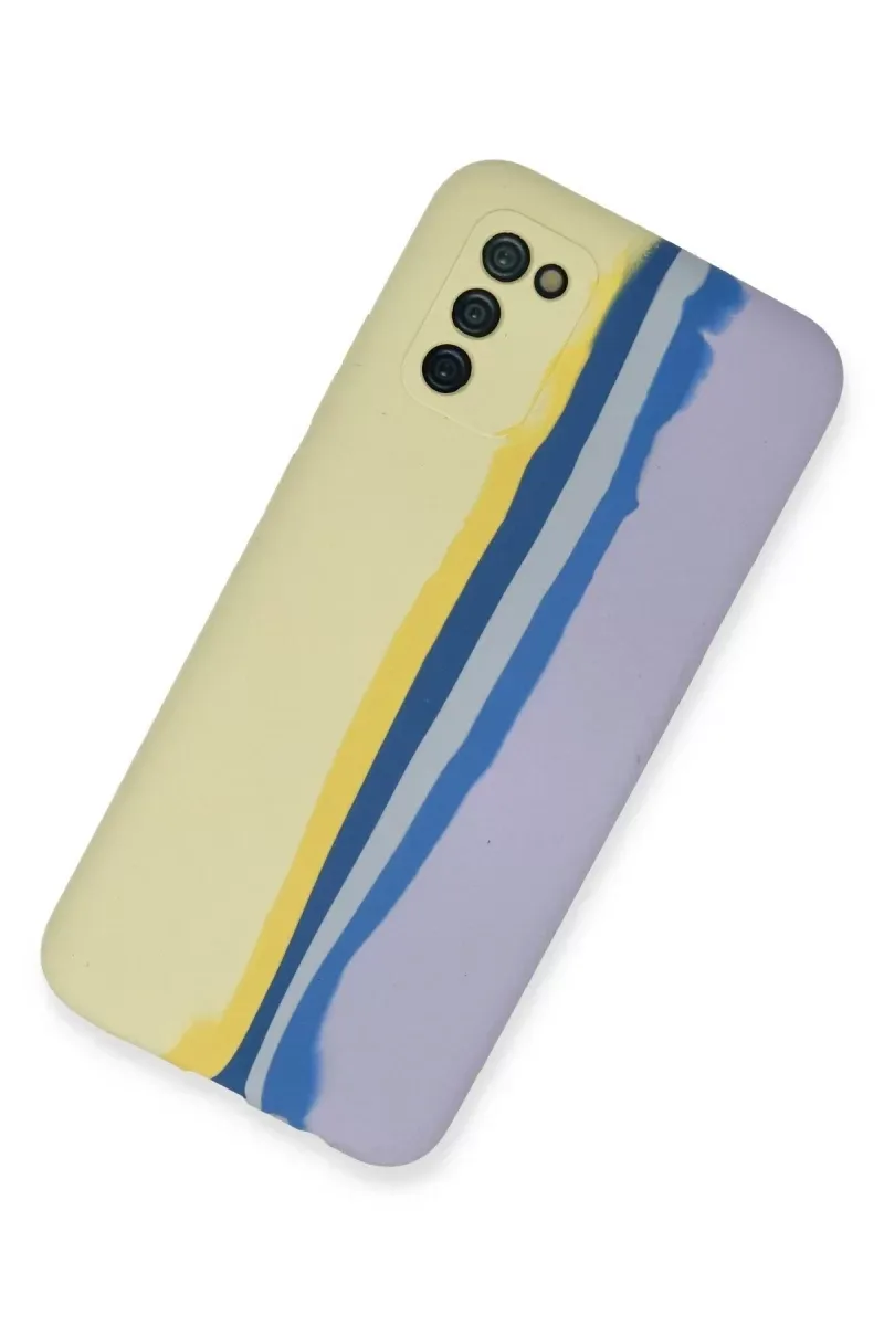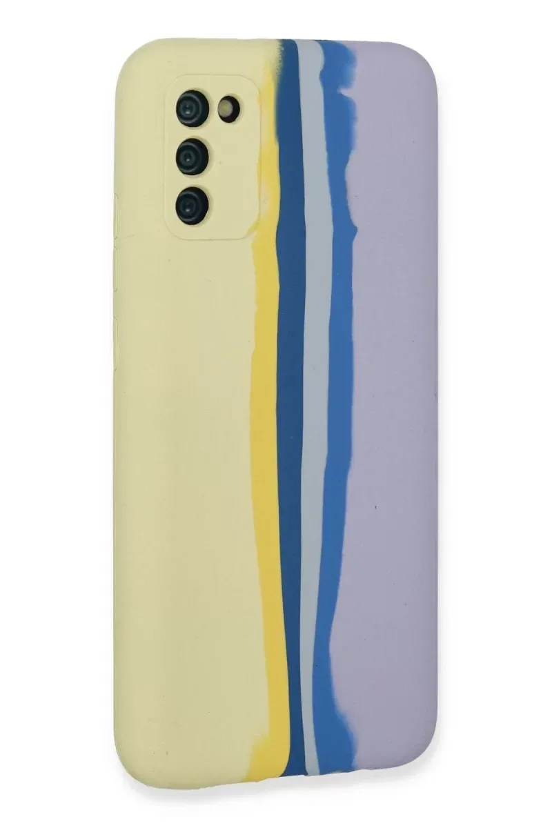 Newface Samsung Galaxy A03S Kılıf Ebruli Lansman Silikon - Sarı-Lila
